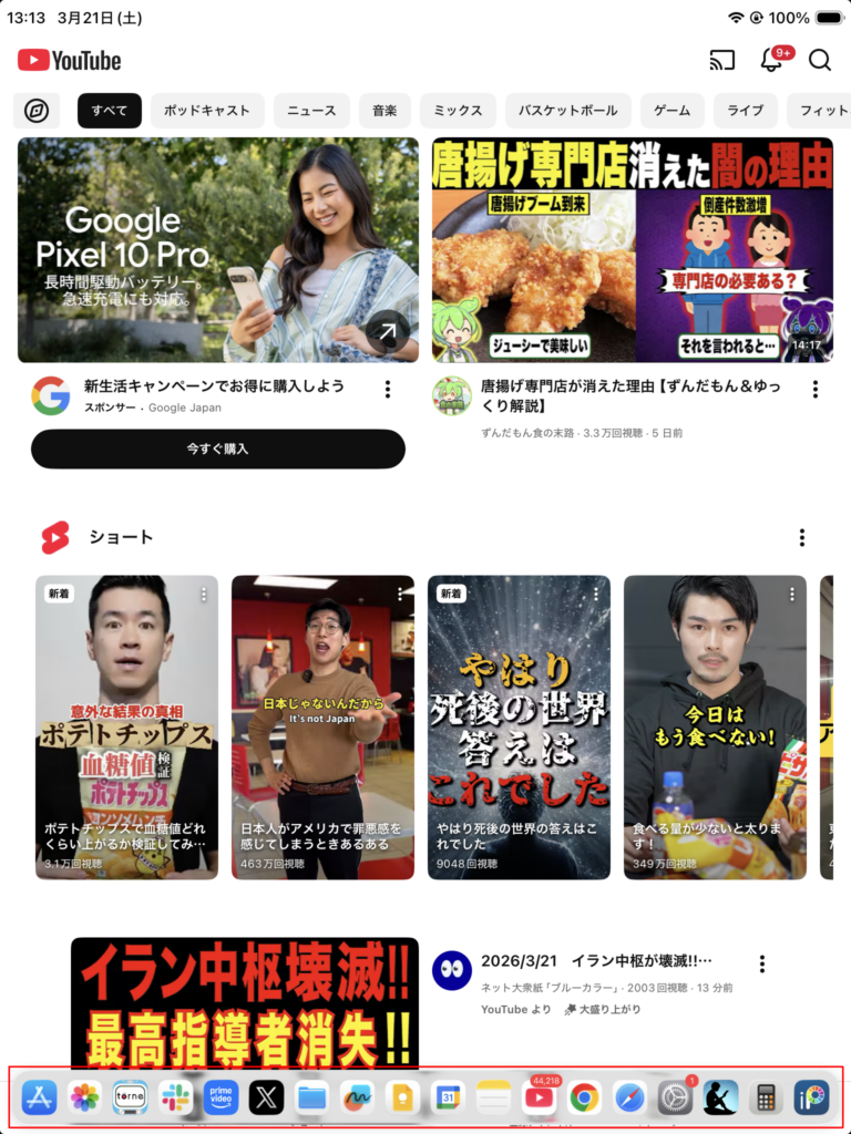 iPhoneやAndroid(スマホ/タブレット)に無くて「iPadにだけある便利機能」として「Dock」(タスクバー)の存在があります